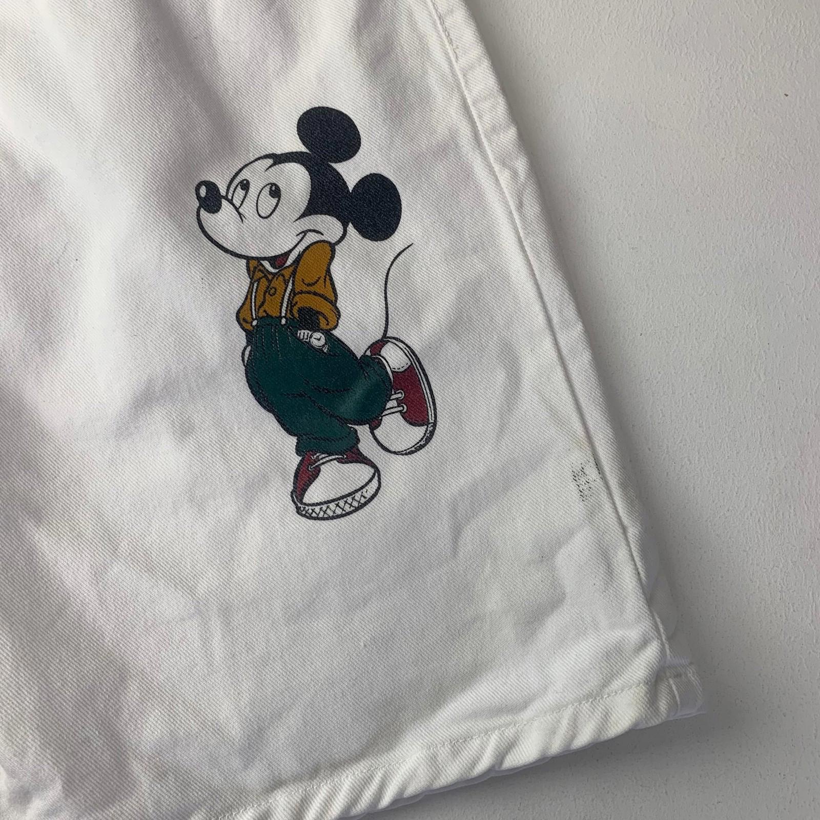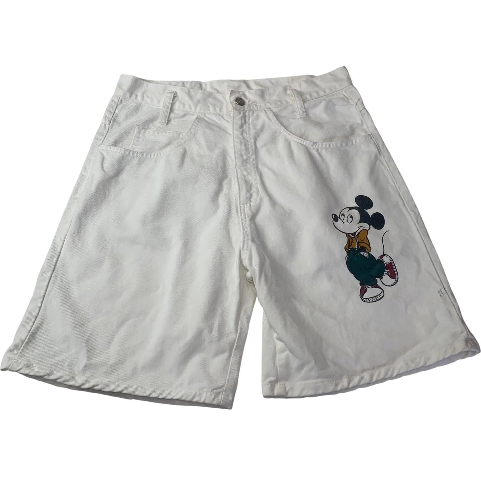 These shorts feature a classic Mickey Mouse print, adding a touch of nostalgic charm to your wardrobe. The durable denim fabric ensures lasting wear, while the white color gives them a fresh and versatile look. Perfect for casual outings or a playful touch to your everyday style.