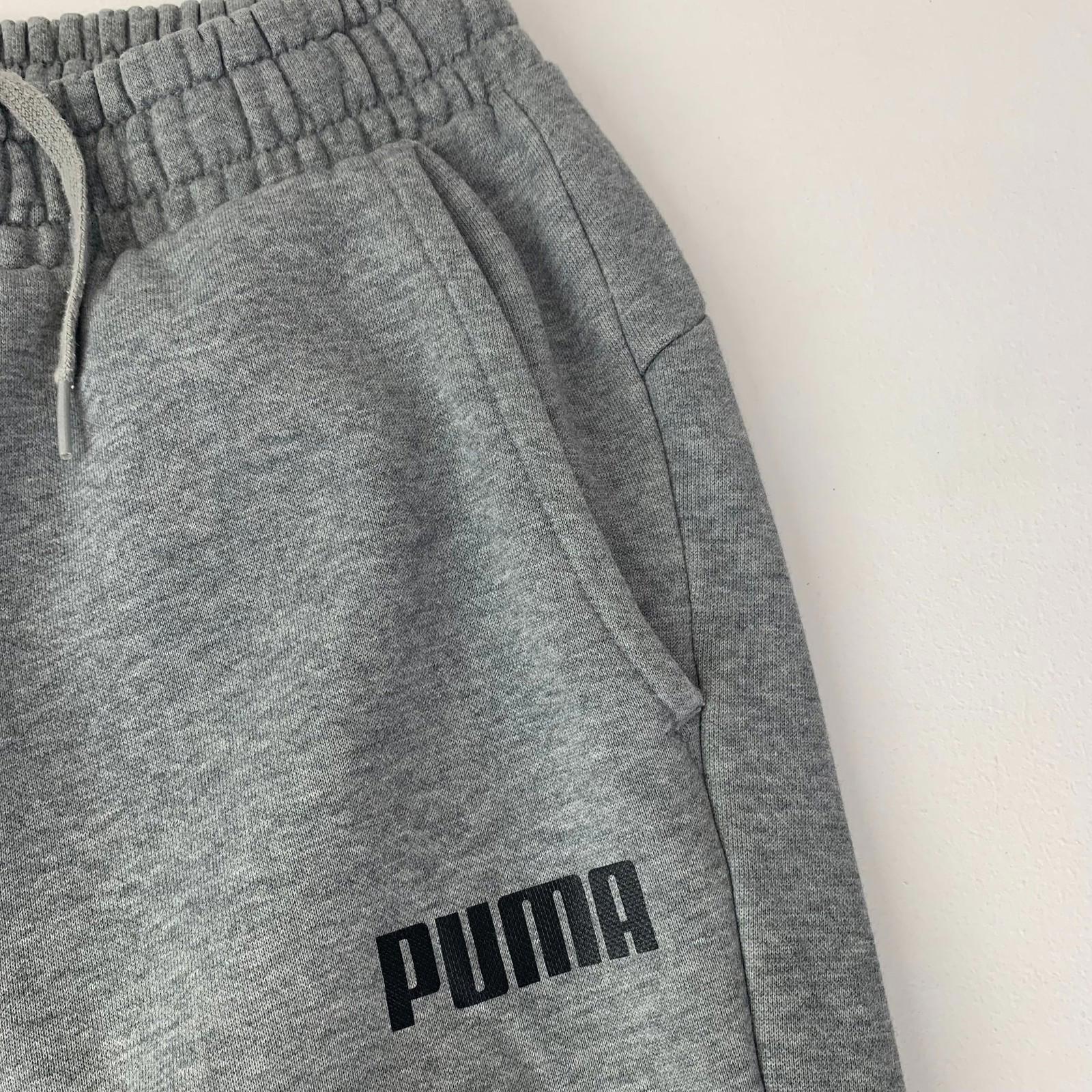 These Puma track pants feature a comfortable elastic waist with a drawstring for added adjustability. Made from soft and durable fabric, they are ideal for casual wear or light athletic activities. The grey colour and classic design make them versatile for pairing with various tops.